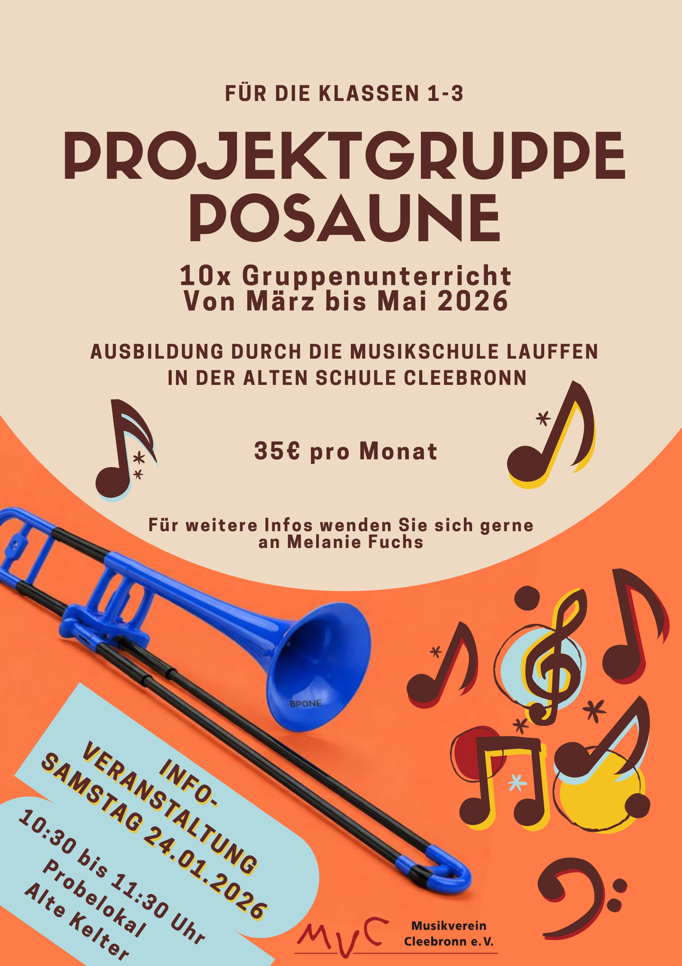 Kontaktdaten: Melanie Fuchs Jugendleiterin 01511 902 1772, jugendleitung@mv-cleebronn